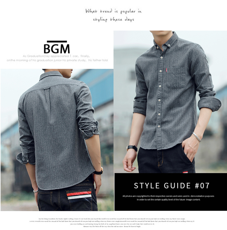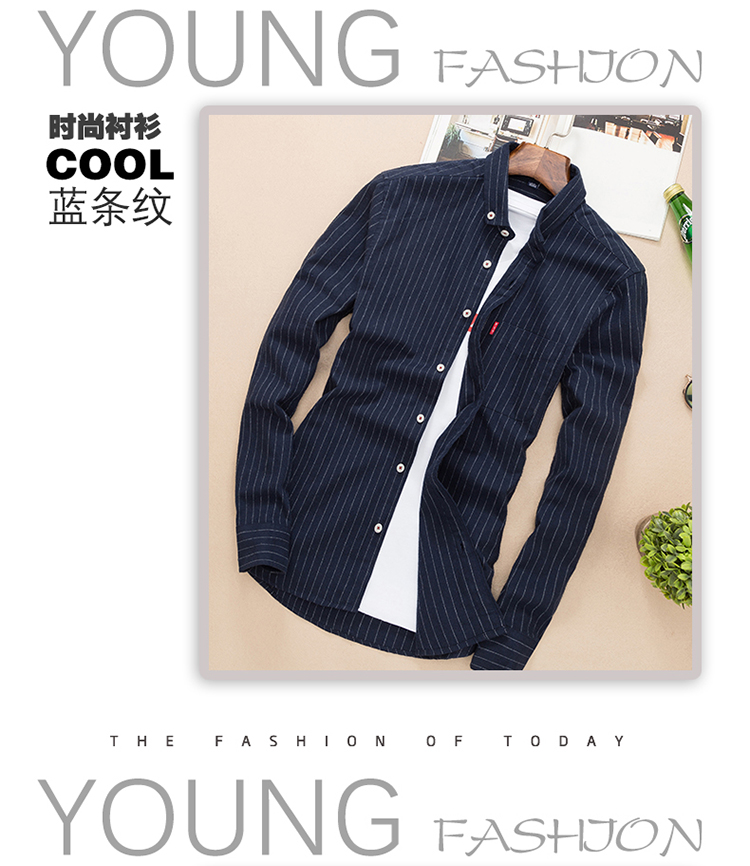 秋季条纹磨毛宽松棉衬衣男士上衣服长袖衬衫大码休闲男装外套潮流