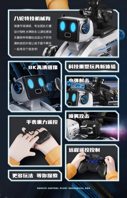 智能机器狗遥控车玩具八轮儿童手势三感应电动汽车男孩礼物机器人的描述