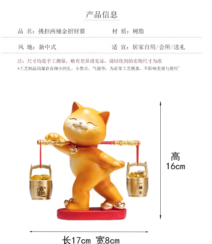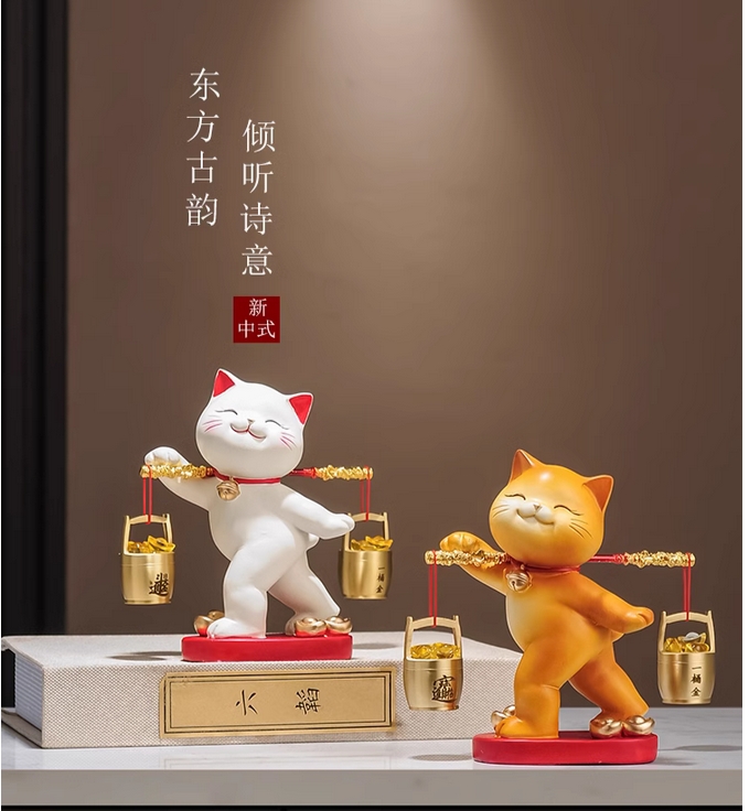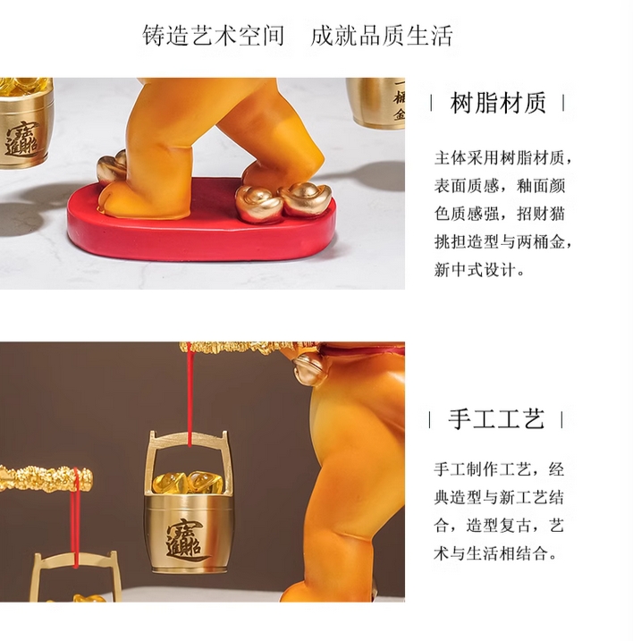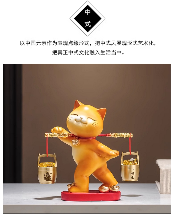 一桶金招财猫摆件乔迁开业礼物新中式客厅电视柜公司收银台装饰品的描述