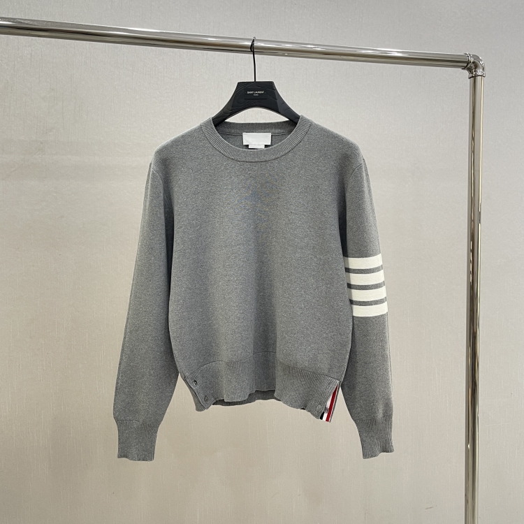 秋冬新品TB纯棉针织四杠圆领毛衣男女潮流袖标彩条套头上衣打底衫